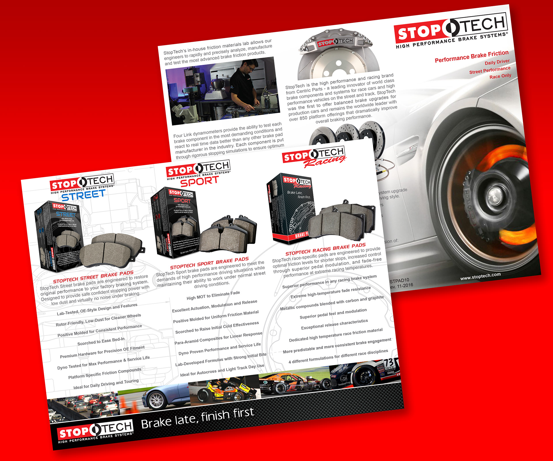 8.5 x 11" tri-fold brochures highlighting various product lines and offerings.